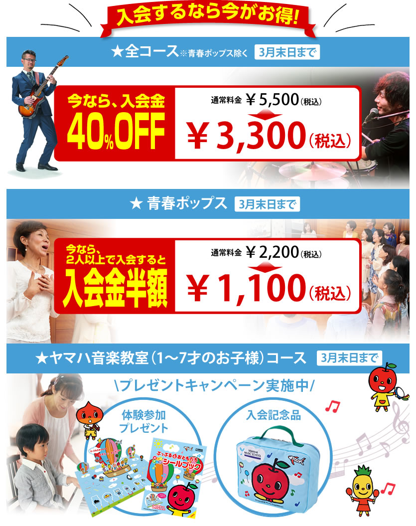 同居のご家族がアコヤ楽器店に入会されている方は、入会金が通常5500円(税込)から3300円(税込)に!